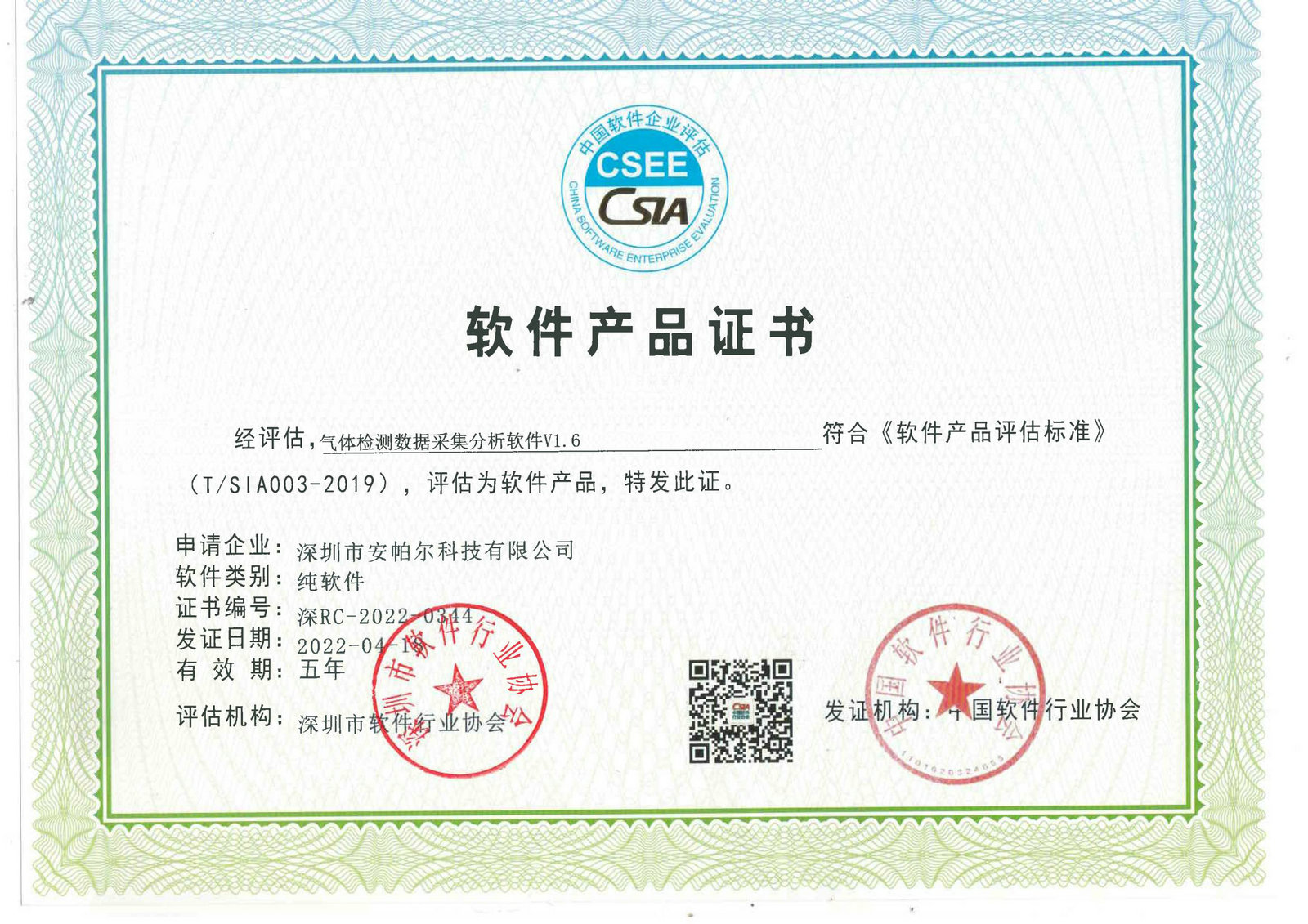 軟件產品證書 氣體監測數據采集分析軟件