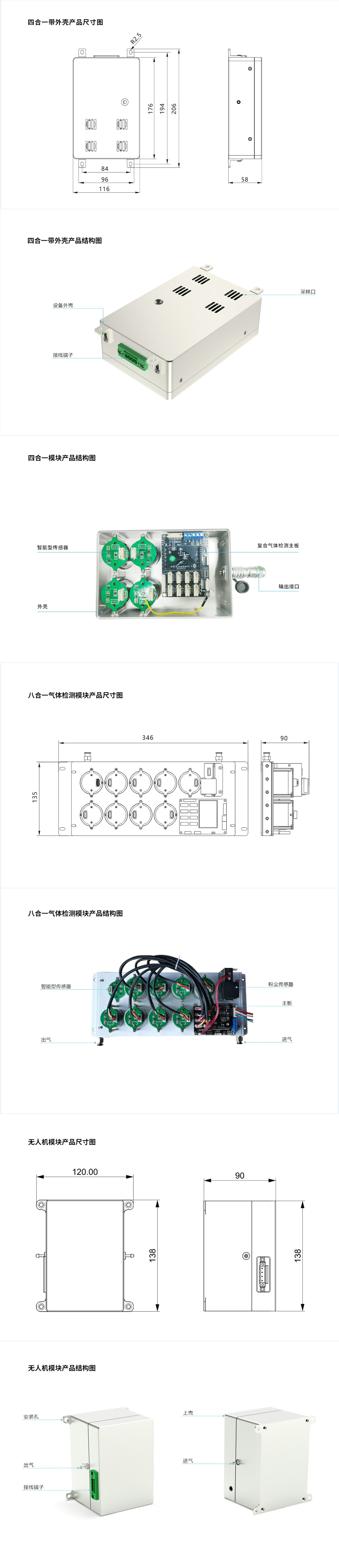 ☆  除了檢測氣體外可以檢測其它氣分因子,比如:粉塵、PM2.5/10、溫度、濕度、紫外、光照、蒸汽含量、風速、風向等信息;